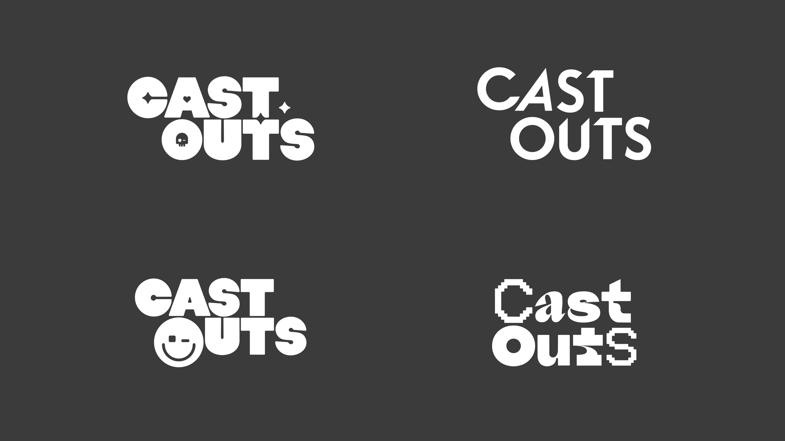 Custom extensions, especially the exaggerated A and slash, disrupt the flow to amplify the title and underline the game’s urban, rule-bending tone. Emerging from playful experimentation, this direction anchors Cast Outs with confidence, personality, and memorability.